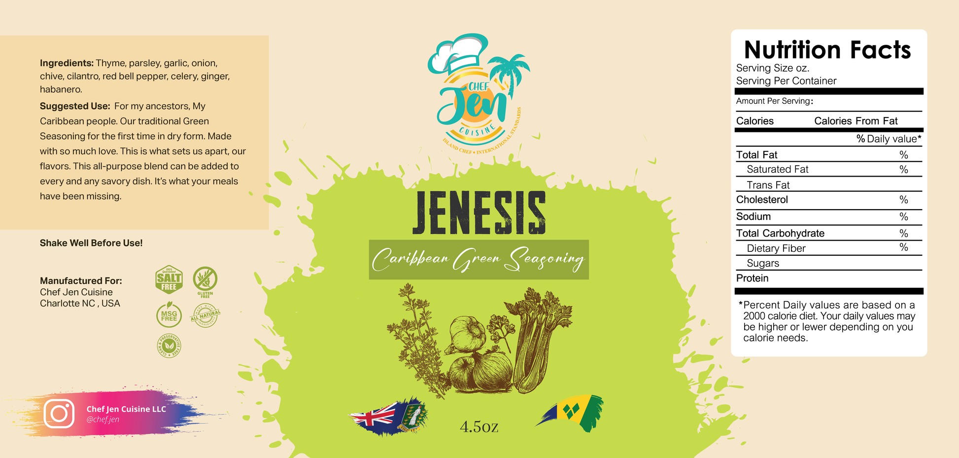 Our traditional Green Seasoning for the first time in dry form . Made with so much love. This is what sets us apart , our flavors. This All- purpose blend can be added to every and any savory dish. , It's what your meals have been missing. Made with all natural ingredients, no msg , no preservatives, Salt free , gluten free.