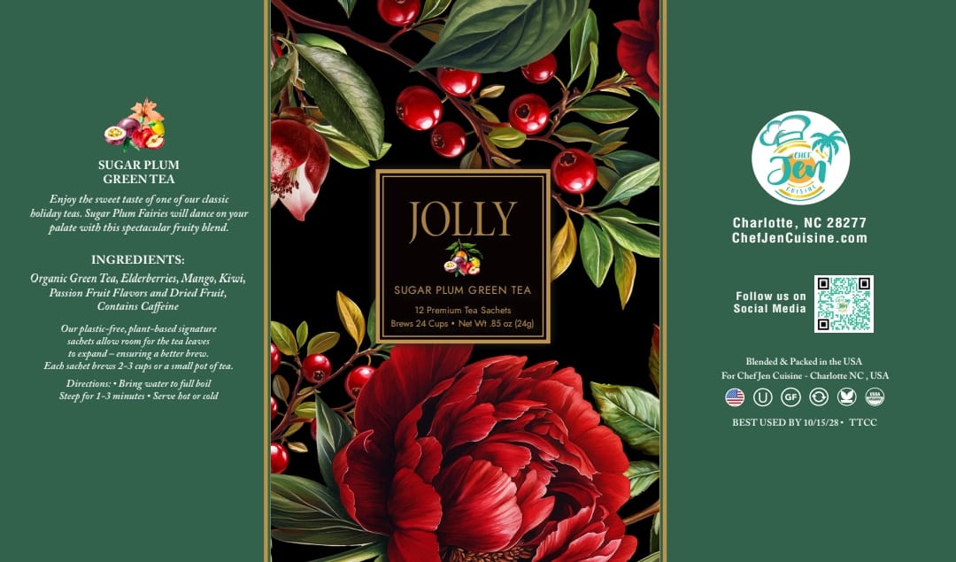 Organic green tea , Elderberry, Mango, Kiwi, Passion fruit flavors, dried fruit